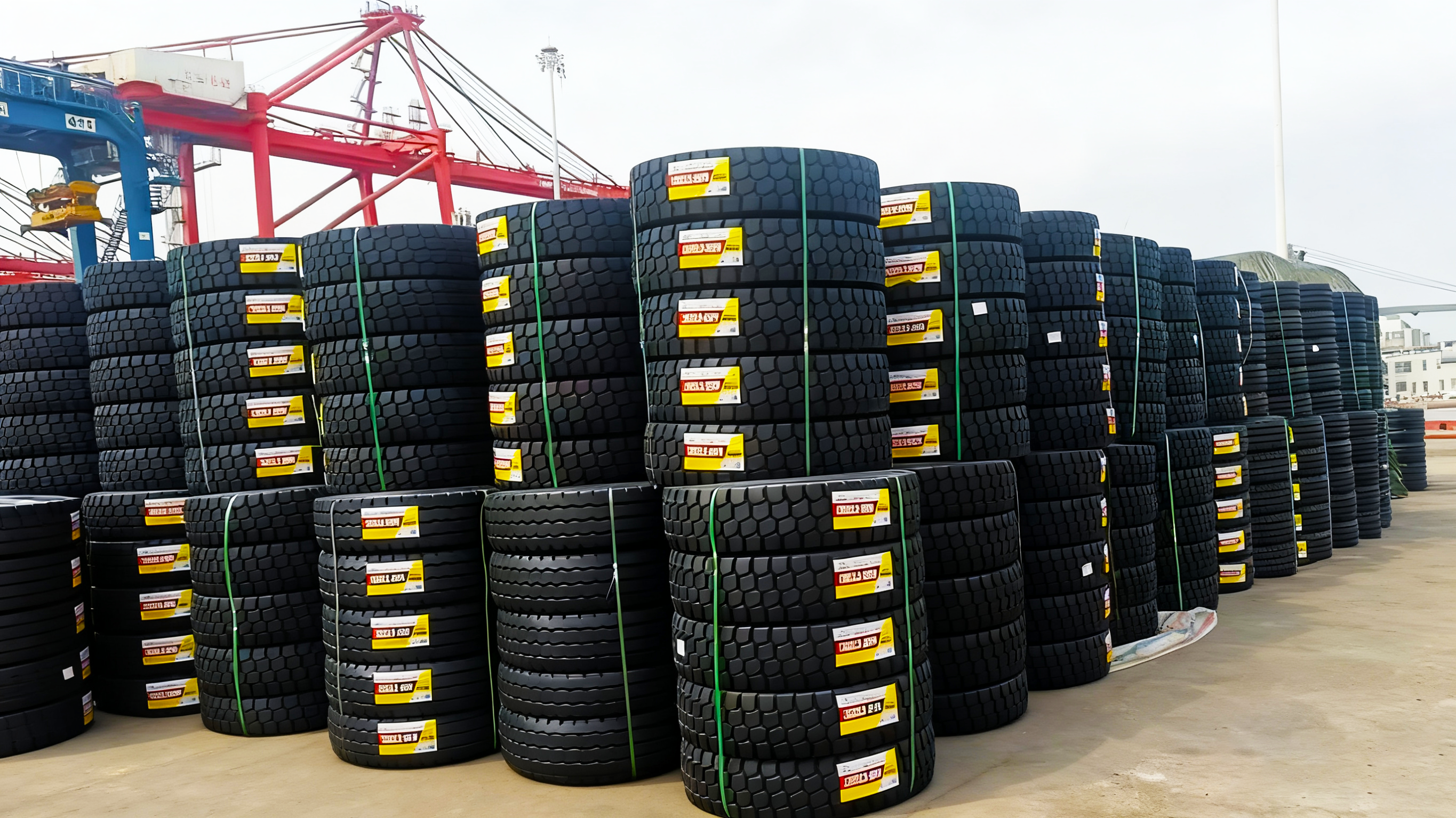 IV. Delivery and Acceptance DetailsThis delivery adopted bulk carrier shipping, which faced multiple packaging and transportation requirements: a single tire weighs approximately 80 kilograms, and transporting individual tires would incur additional small parcel fees due to the volume being less than 1 cubic meter. Therefore, we determined a packaging plan of "bundling four tires together" to ensure each bundle’s volume meets the standard for waiving small parcel fees. However, the bundled weight of over 300 kilograms posed a challenge to packaging stability, as ordinary thin strapping could not prevent scattering during transportation. To address this, we collaborated with the factory to conduct multiple rounds of packaging tests, ultimately selecting wide special strapping that meets load-bearing requirements. Each bundle of tires was reinforced with 3 straps to ensure no scattering during stacking and loading/unloading. Through standardized packaging processes, all tires were neatly stacked, and port unloading and acceptance were completed smoothly.