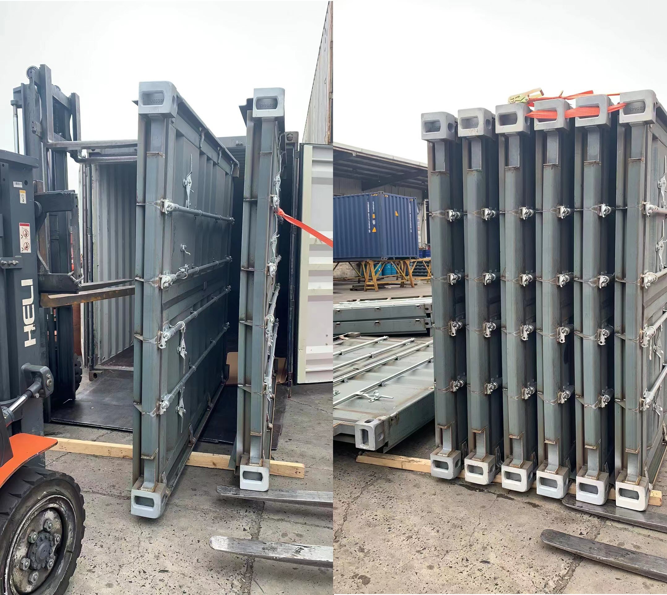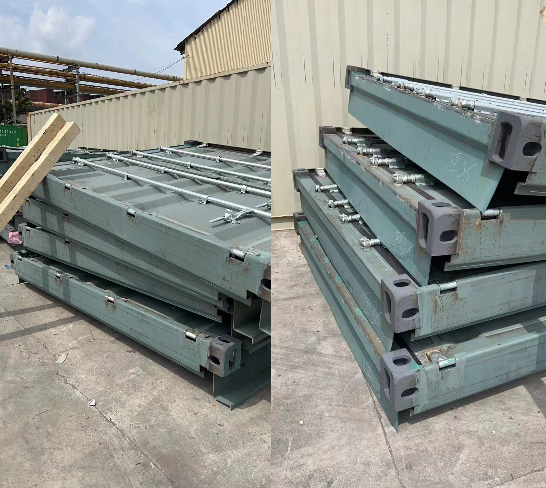 Instead of simply trying to adjust the factory’s production process, we proposed a more optimal alternative: a complete set of finished 40HC rear door frame combinations with pre-assembled and welded hinges. This turnkey solution not only met the customer’s core need to avoid on-site welding and part loss but also saved their processing time and operational costs while simplifying on-site management.